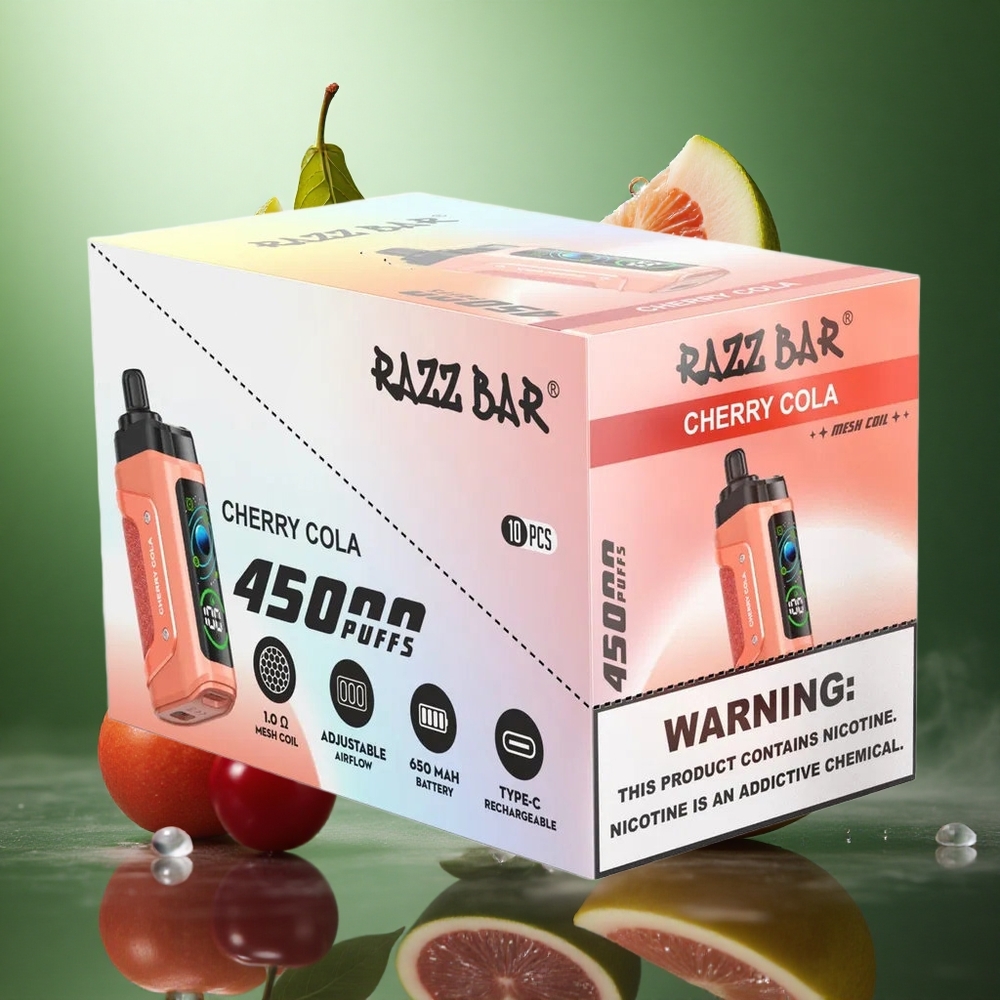 Вишна Кола Razz Bar 45000 Въздушни Задвижвания Bulgaria vape с 650 mAh Батерия и Type-C Зареждане