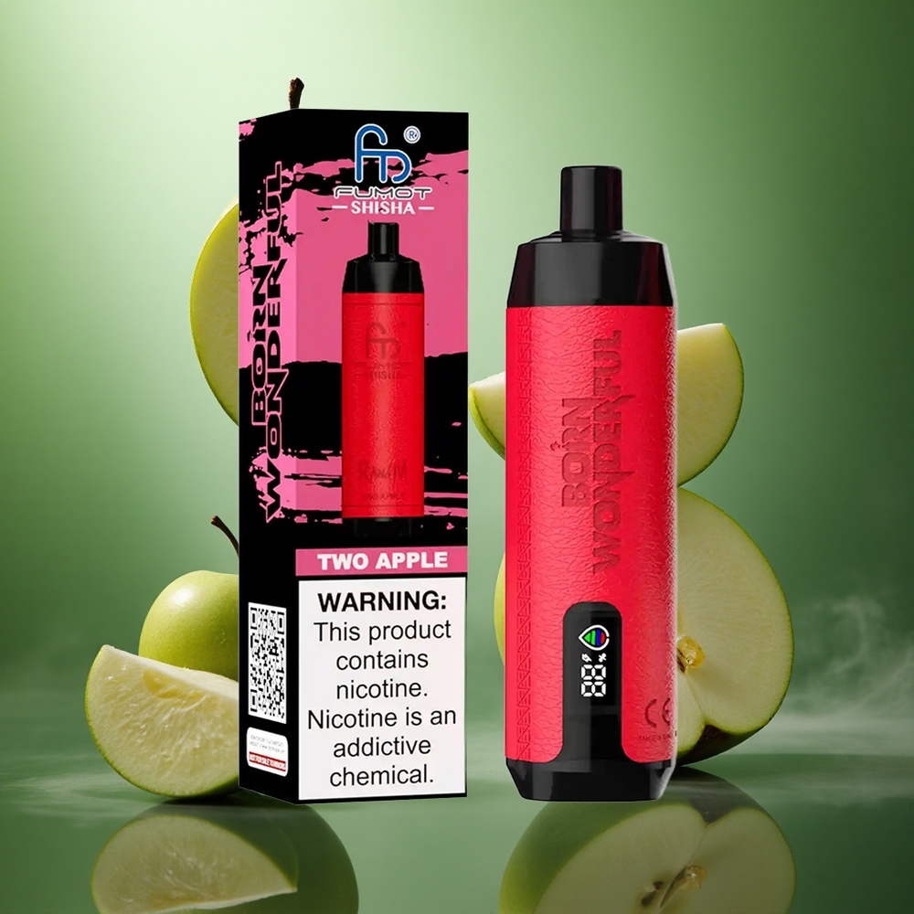 Две Ябълки RandM Fumot Shisha 10000 Въздуха Bulgaria vape LED Индикатор