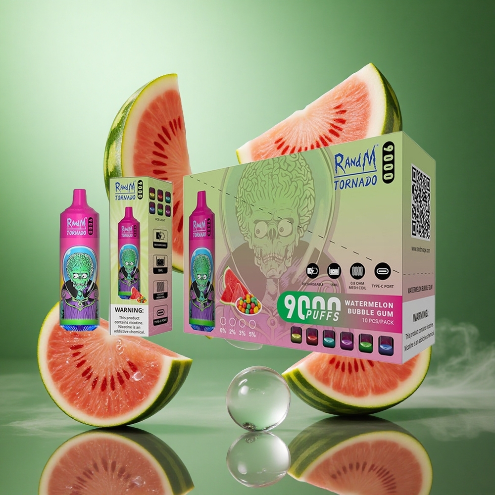 Диня Бабъл Гум RandM Fumot Tornado 9000 Въглеродни пухове Bulgaria vape 18 mL Мрежеста намотка