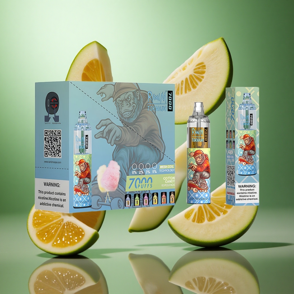Захарна памучна сладолед RandM Fumot Tornado 7000 затяжки Bulgaria vape с RGB светлина