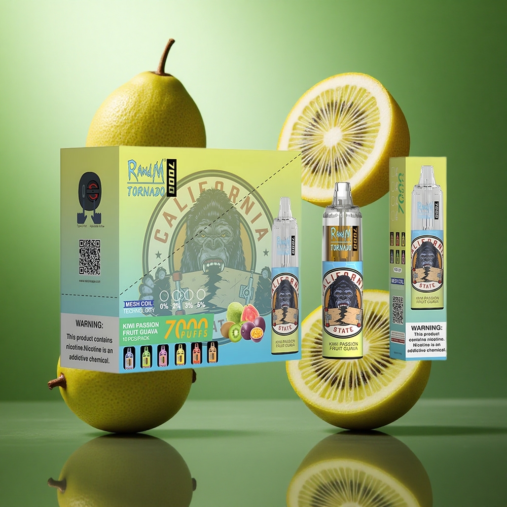Киви Пъшън Фрут Гуава RandM Fumot Tornado 7000 пуфове Bulgaria vape с Mesh Coil и RGB Light