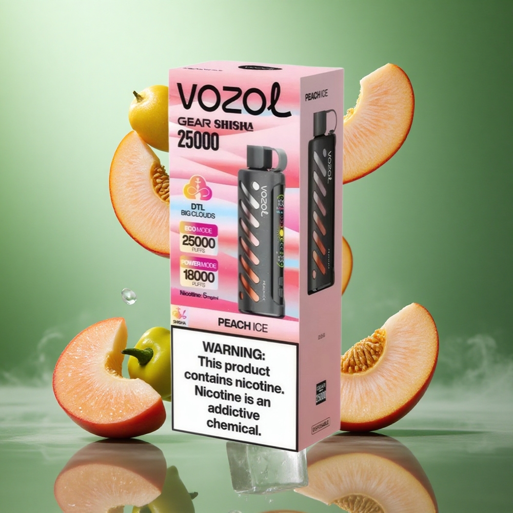 Праскова Лед VOZOL Gear Shisha 25000 Пушвания Bulgaria vape Двоен мрежест двоен режим