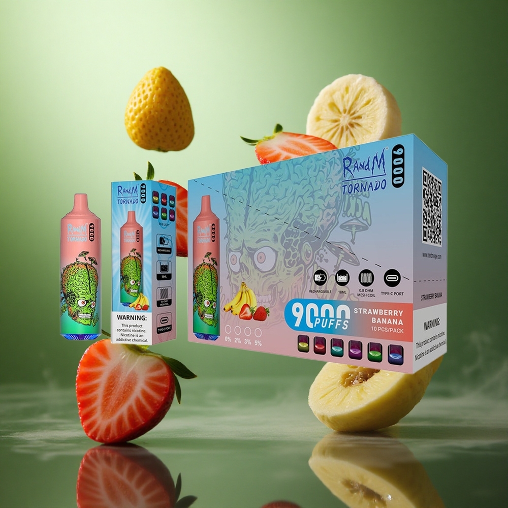 Ягода Банан RandM Fumot Tornado 9000 Въздухоиздухвания Bulgaria vape 18 мл и RGB дисплей